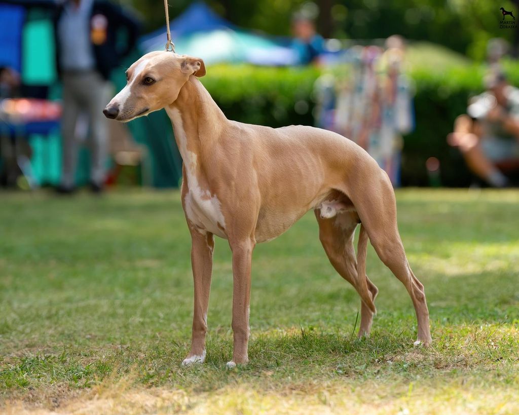 Dette er en kombinasjon vi lenge har sett frem til. Harry er født i Whippetens hjemland - England, men bor nå hos sin eier i Tsjekkia. Han er en klassisk modell av sin rase og fanget blikket med én gang jeg så han.